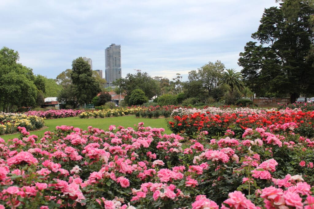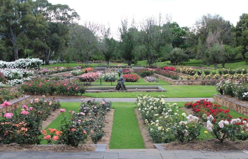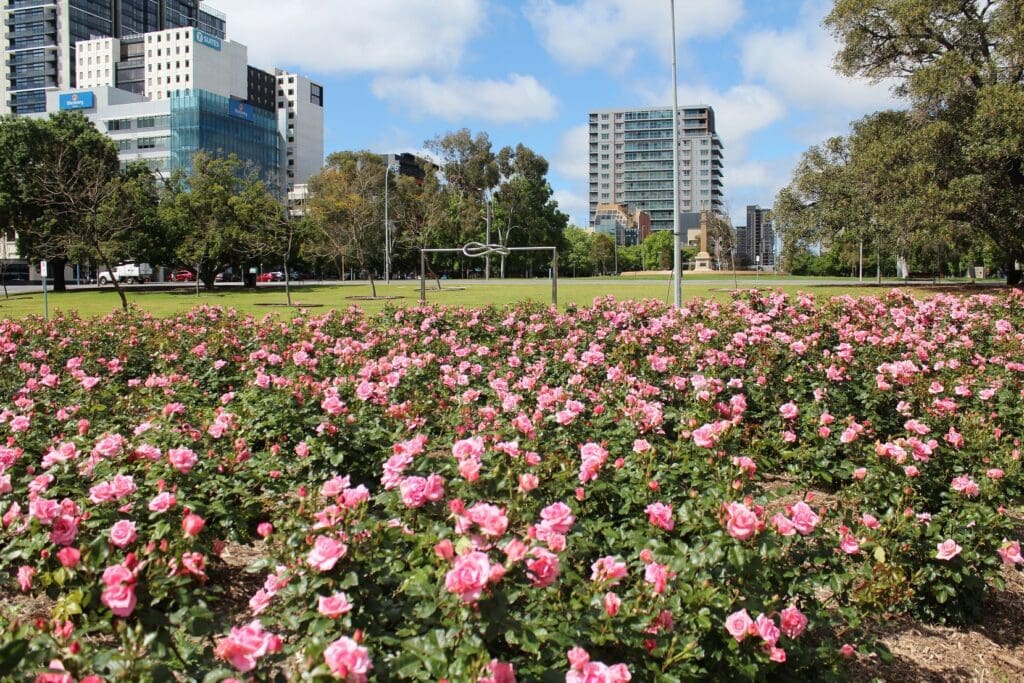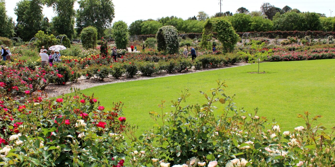 Adelaide has often been described as “the City of Roses” as it features several significant rose gardens and many street plantings throughout the city. Thanks to a wonderful Mediterranean climate, Adelaide has many well-known rose gardens where it is estimated more than 2.5 million roses are under cultivation across the city and regional areas. Across the Adelaide Parklands and throughout the city streets, approximately 25,000 rose bushes thrive. Many are displayed in beautifully maintained formal gardens that offer a sensory spectacle with every new flush, made possible by the year‑round commitment of the City of Adelaide’s dedicated horticulturalists.