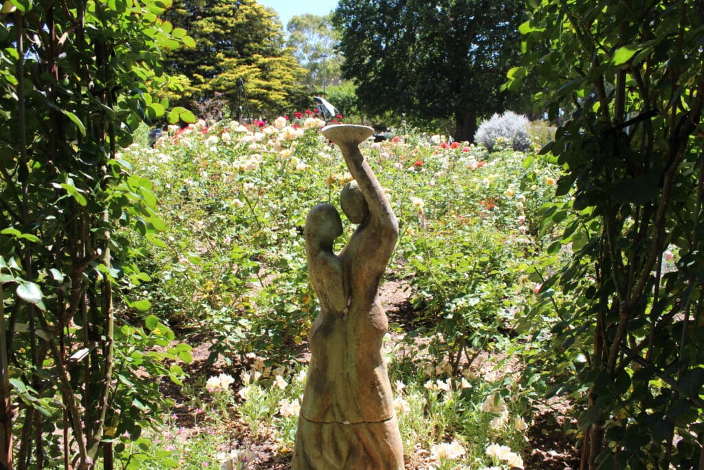 In 1991, the centenary of Urrbrae House, an ambitious project commenced to redevelop the gardens. The result was a blend of history, art and landscape design incorporating a Twentieth Century Rose Garden with over 200 varieties. Two roses survive from Peter Waite’s time, a Cecile Brunner hedge and Madame Alfred Carrière.