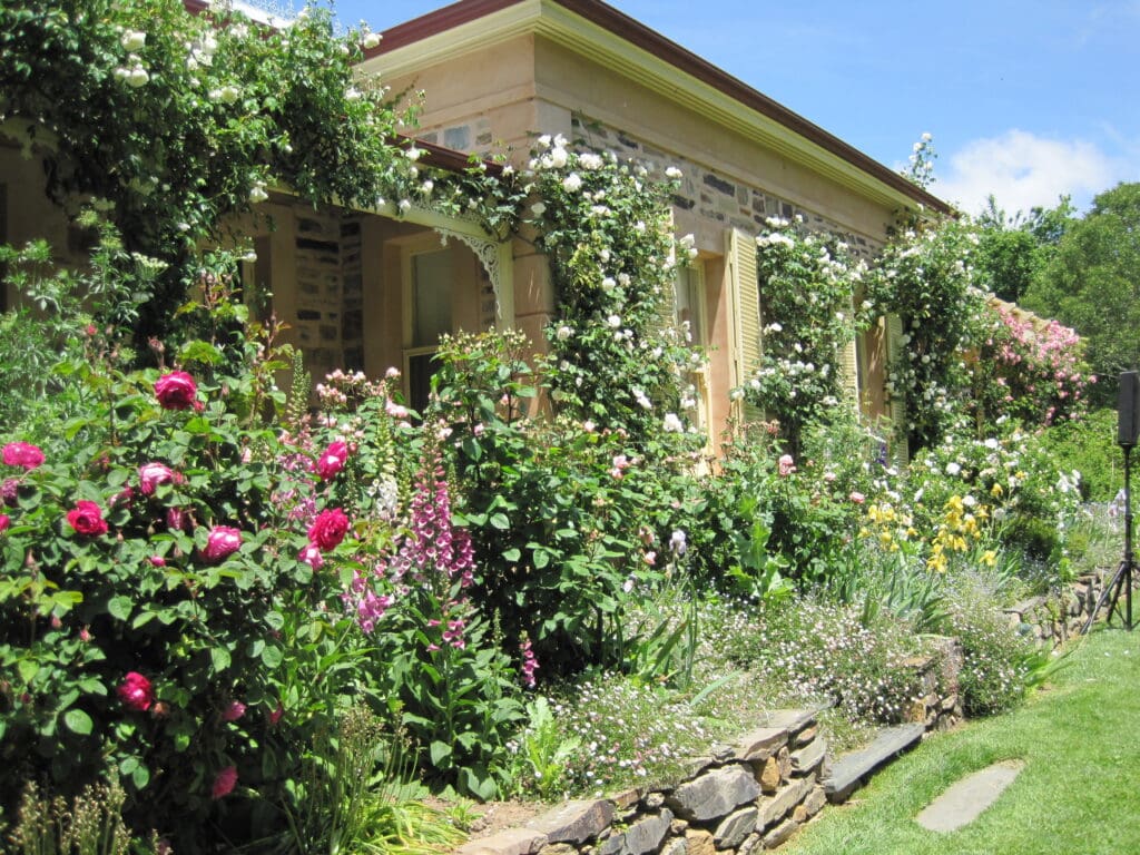 THE HERITAGE GARDEN, GILLENTOWN, CLARE VALLEY was established by the famous rosarian Walter Duncan OAM and his wife Kay Duncan in one of Australia’s oldest wine regions. Starting in 2002, Walter and Kay developed a beautiful garden on two acres, featuring over 2,000 roses and of particular significance 500 of them are heritage roses. Additional plants, such as delphiniums and foxgloves, create an overall scene of abundance and colour. This is one of South Australia’s best private rose gardens usually open in early November as a charity fundraiser. The Heritage Garden also offers B&B accommodation.